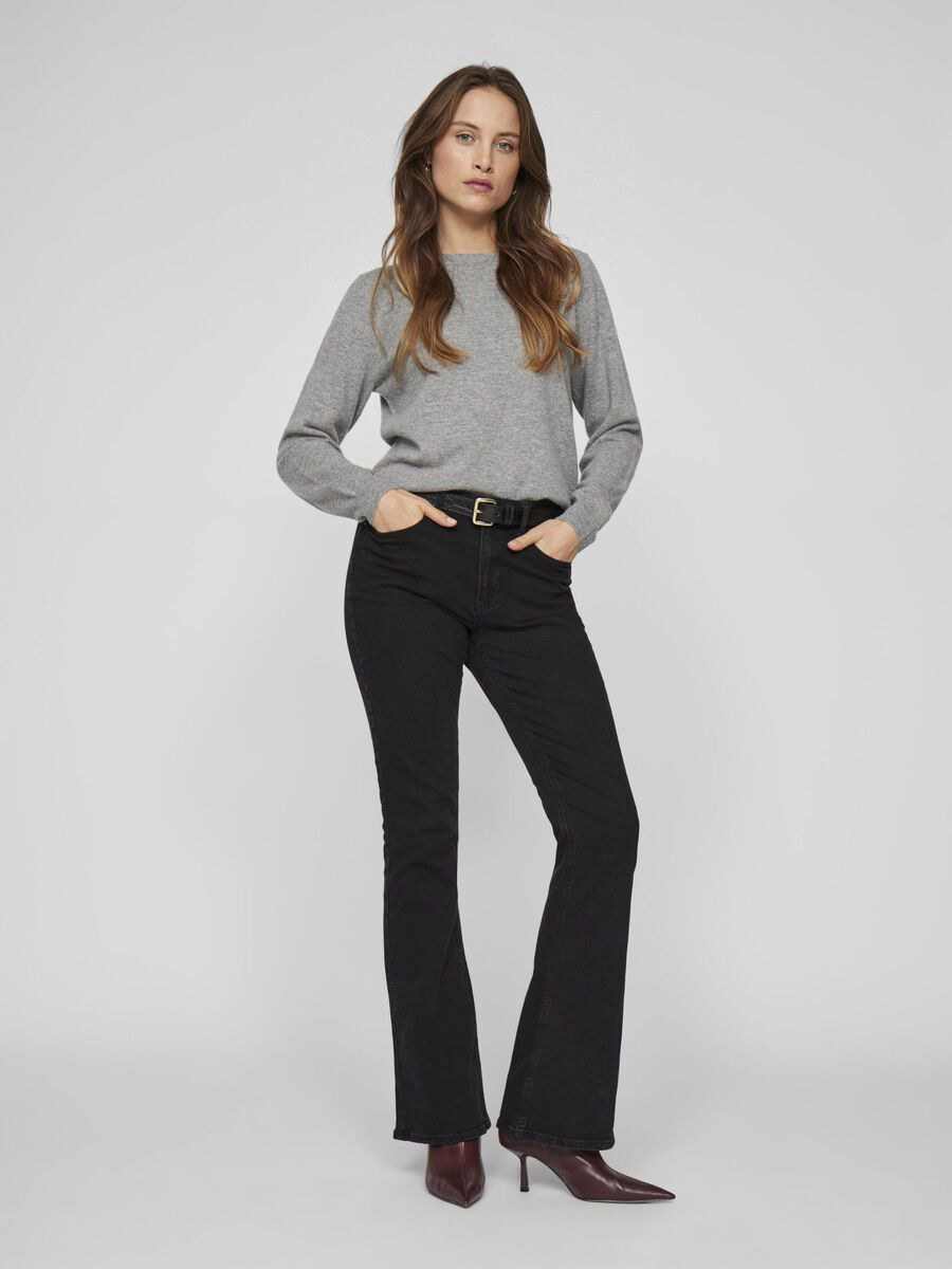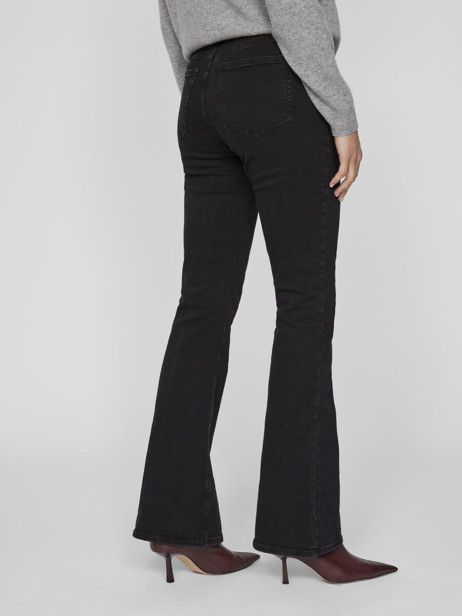 Entallado en la cadera y el muslo, con perneras acampanadas..