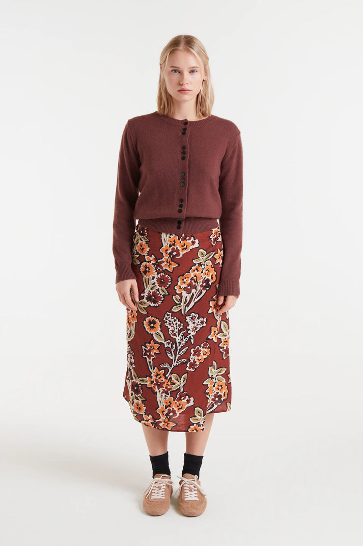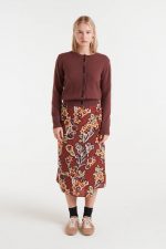 Cárdigan de punto marrón.
