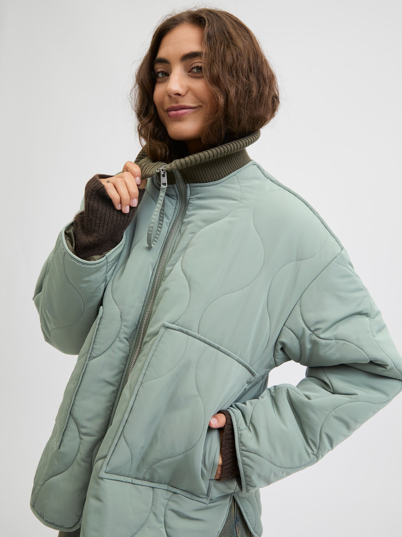 Bolsillos ribeteados integrados que aportan funcionalidad.