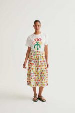Bordado de tulipanes en la parte frontal.