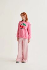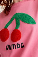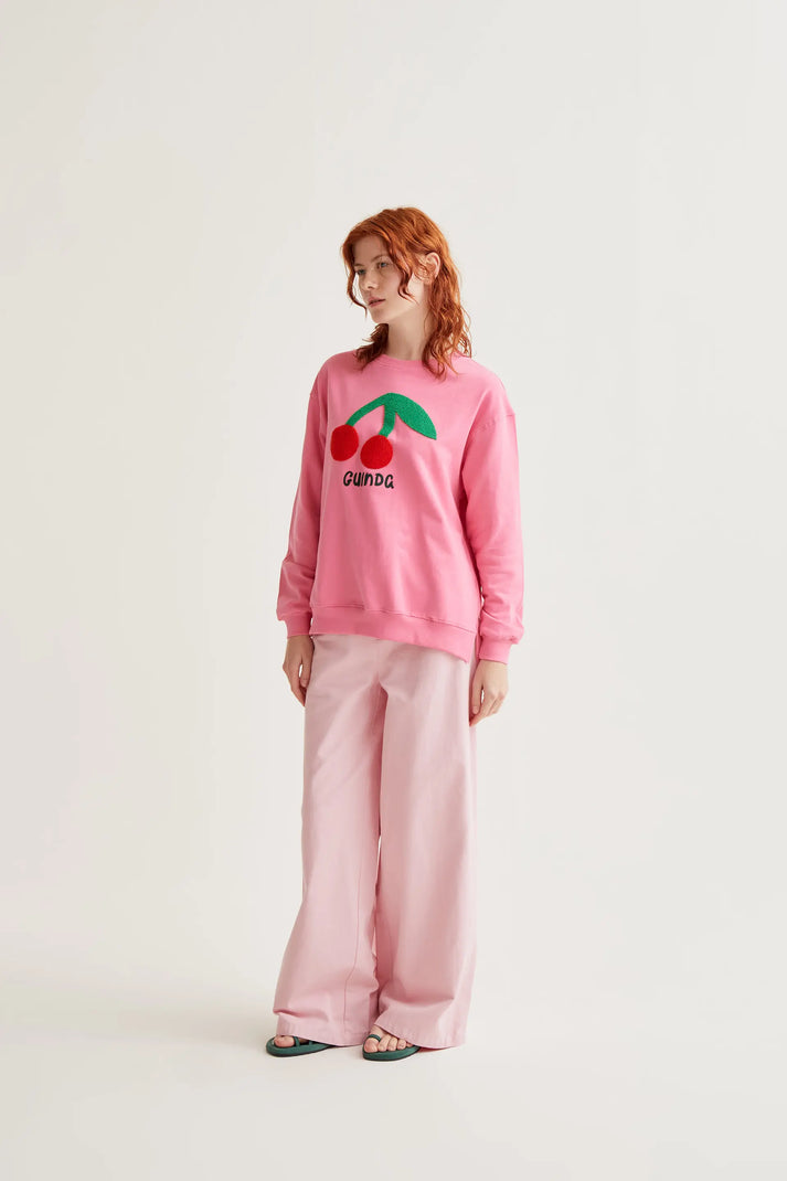 En color rosa con bordado de guinda roja.